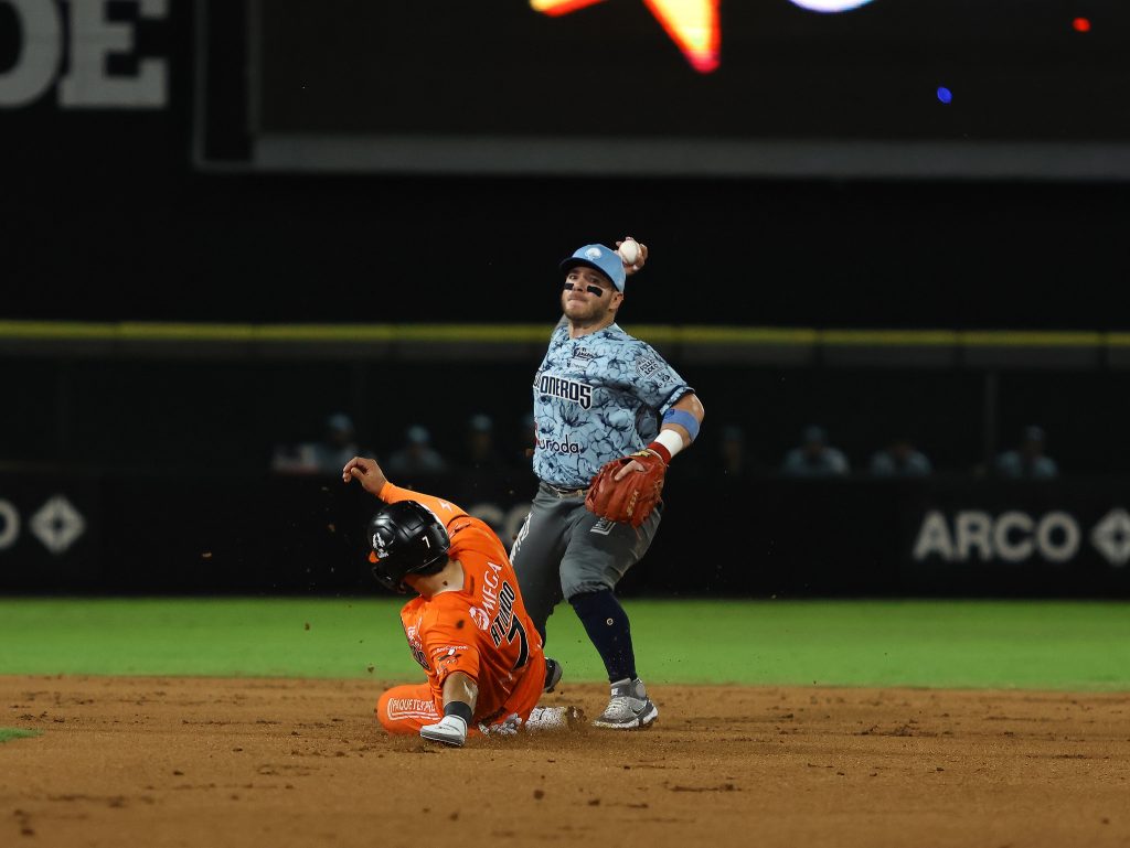 Carlos Arellano conectó su segundo doblete para abrir el noveno rollo, después se movió a tercera con toque de sacrificio de Sebastián Lizárraga y Leonardo Heras lo remolcó con elevado de sacrificio al central para poner la cifra final de 8-5.